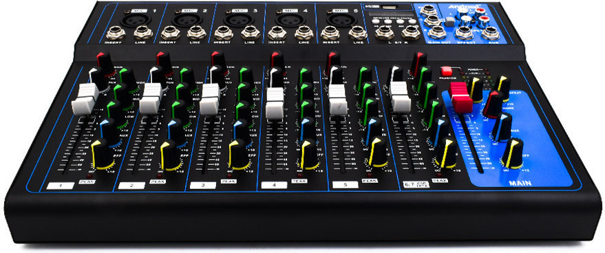 Η αναλογική κονσόλα Andowl Q-7L προσφέρει συνολικά 7 κανάλια για πλήρη έλεγχο της μίξης σας. Περιλαμβάνει 5 μονοφωνικές εισόδους XLR για μικρόφωνα ή όργανα και 2 στερεοφωνικά κανάλια εισόδου. Είναι η ιδανική λύση για μικρά σχήματα, παρουσιάσεις ή οικιακά studios που χρειάζονται καθαρό ήχο και εύκολο χειρισμό σε μια συμπαγή συσκευή που δεν καταλαμβάνει πολύ χώρο.