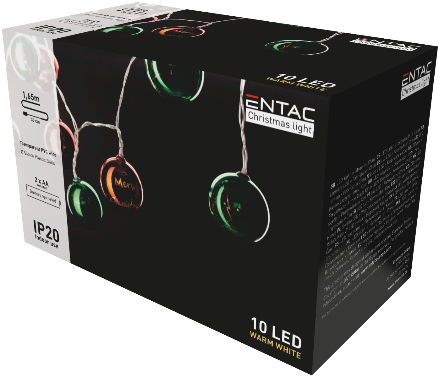 Entac Χριστουγεννιάτικα Εσωτερικά Χρωματιστές Μπάλες 55mm 10 LED Θερμό 1,65μ