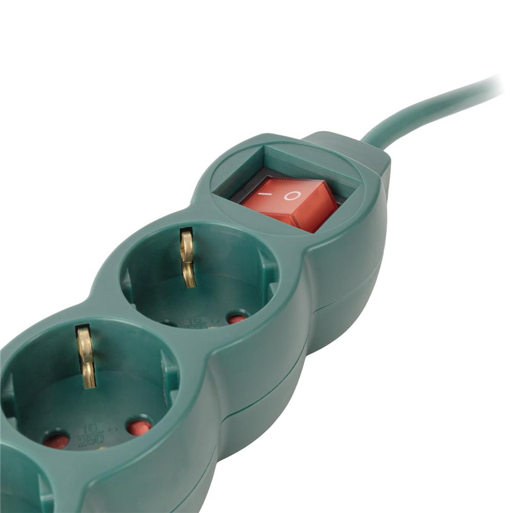 Πολύπριζο Entac με 6 υποδοχές και διακόπτη, καλώδιο 3m, ανθεκτικό 3G1.5, πράσινο χρώμα, ασφαλές και πρακτικό για εσωτερική χρήση.