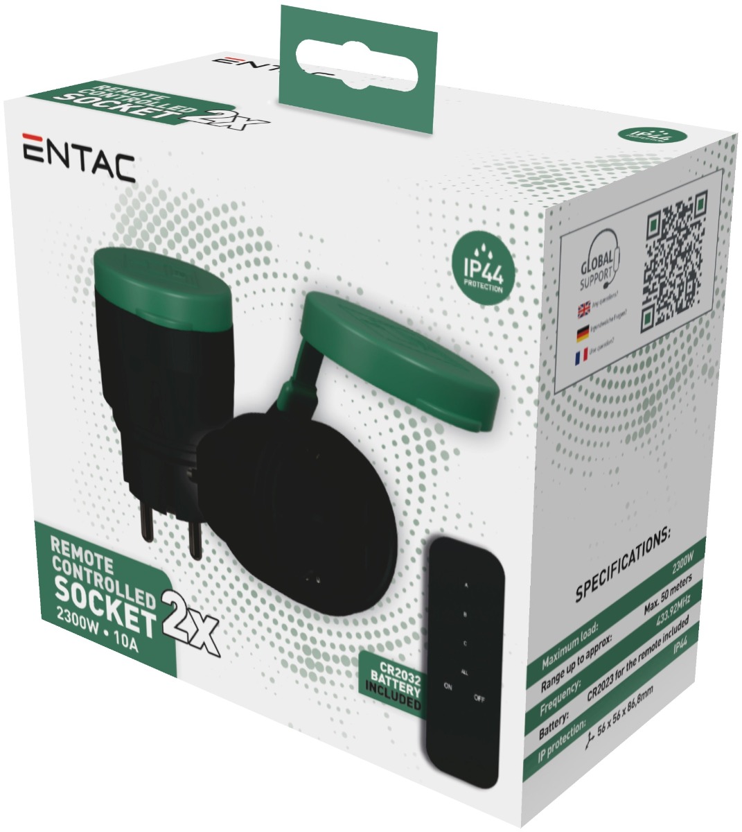 Entac Remote Controlled IP44 Socket Set 2xIP44 Sockets with RC