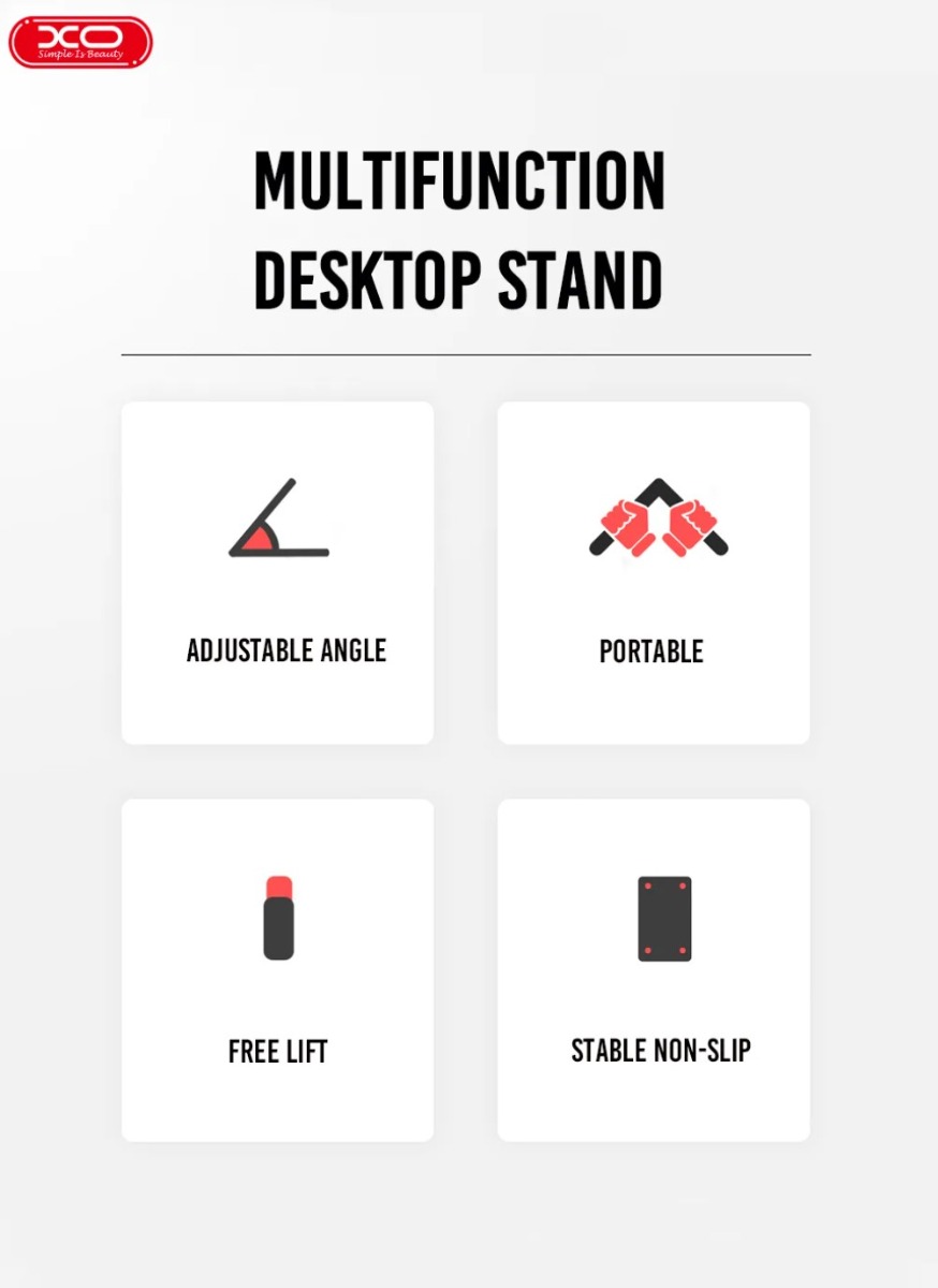 Το XO C46A είναι μια γενική βάση για smartphone / tablet με αντιολισθητική βάση και ρυθμιζόμενη γωνία κλίσης. Κατασκευασμένο από ανθεκτικό πλαστικό και φινιρισμένο με τις μεγαλύτερες λεπτομέρειες, θα ενσωματωθεί τέλεια στον χώρο όπου θα στηθεί.