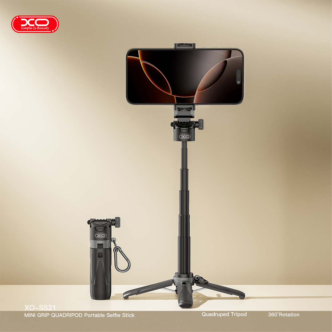 Το XO SS21 είναι ένα μίνι Bluetooth selfie stick 4 σε 1, με επεκτάσιμη λαβή, λειτουργία τρίποδου και τηλεχειριστήριο για εύκολες και σταθερές φωτογραφίες και βίντεο με το κινητό σας.